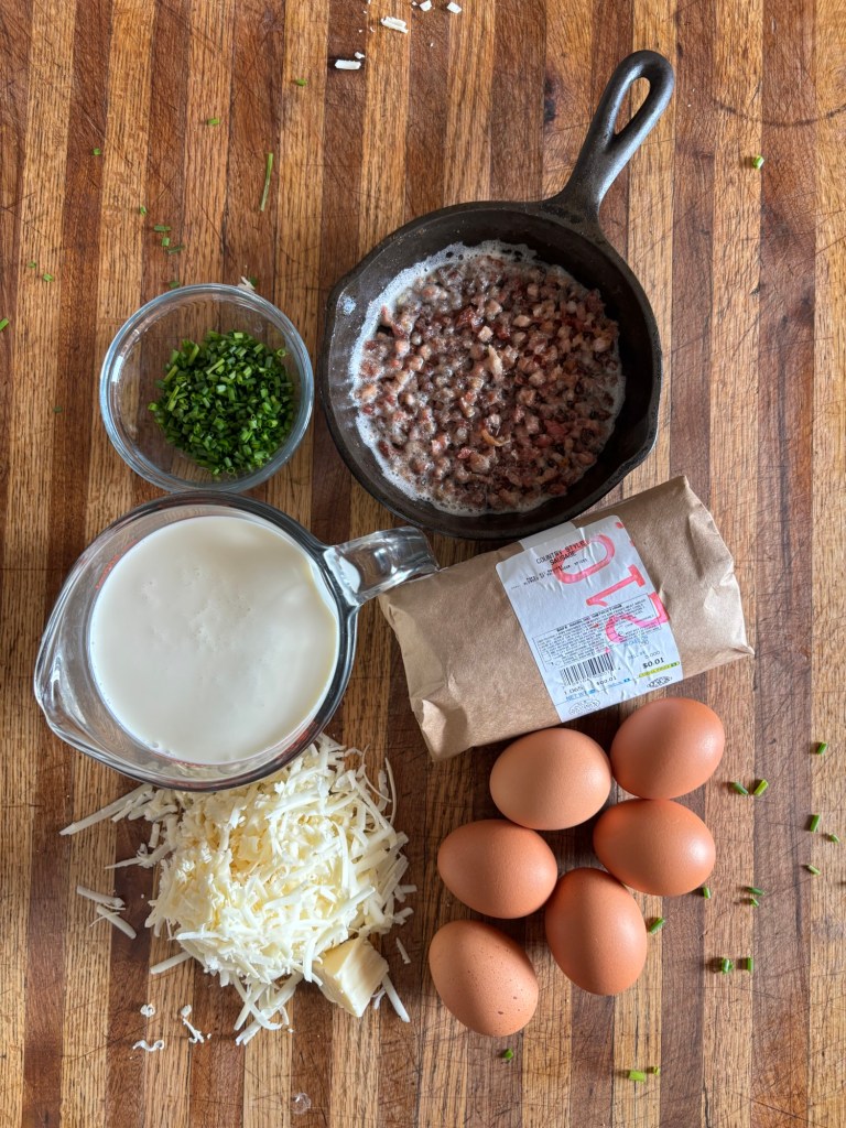 The quiche for this recipe adds crisped prosciutto bits and chives. We also love some cooked sausage and caramelized onions. And the original recipe is amazing as well!
